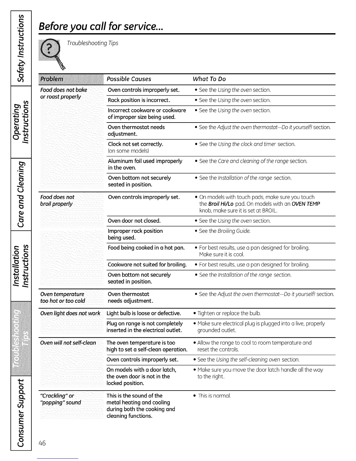 or roast properly Rack position is incorrect. • Seethe Usingthe oven section.