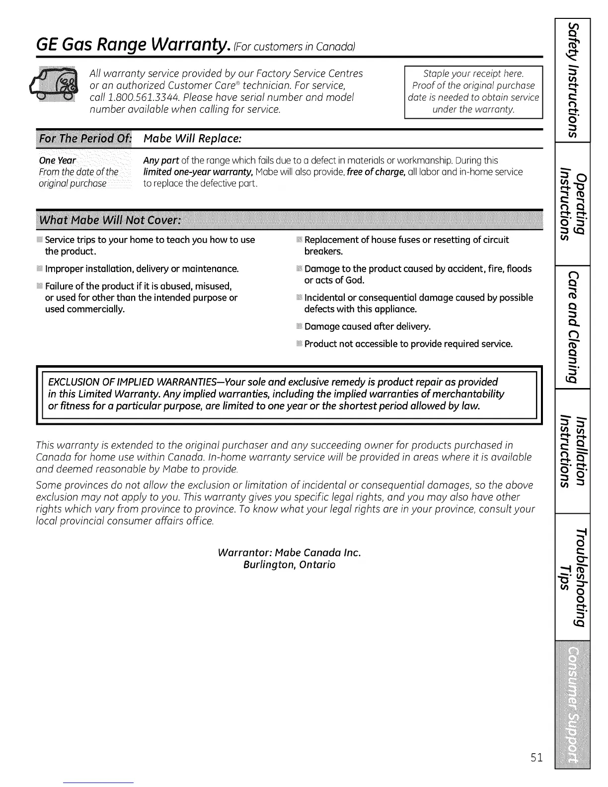 Canada for home use within Canada. In-home warranty service will be provided in areas where it is available