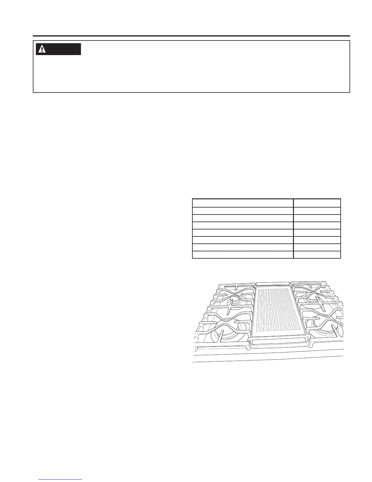 to your griddle. To determine the type of burner you have, see the Types of Surface Burners section.