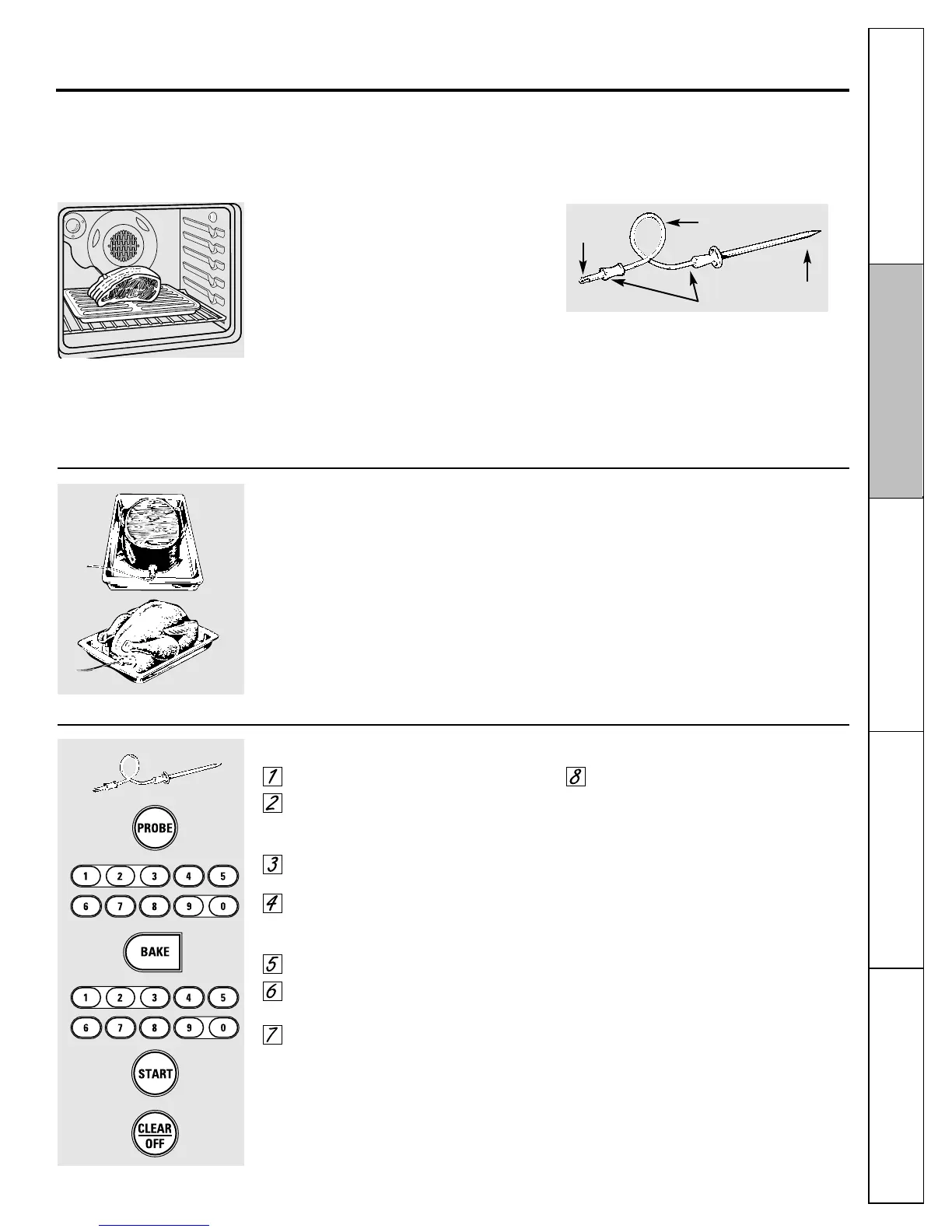 If your model has a door latch, do not lock the oven door with the latch while cooking with the probe. The latch is used