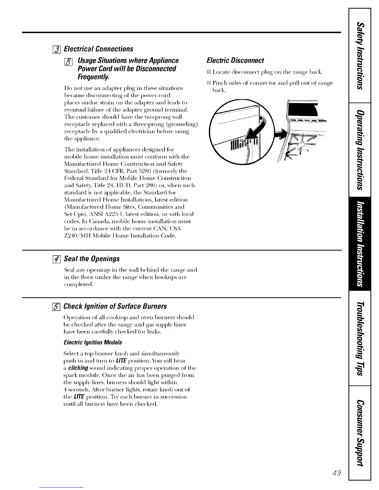 Seal an_ openings in the wall behind tl_e range and