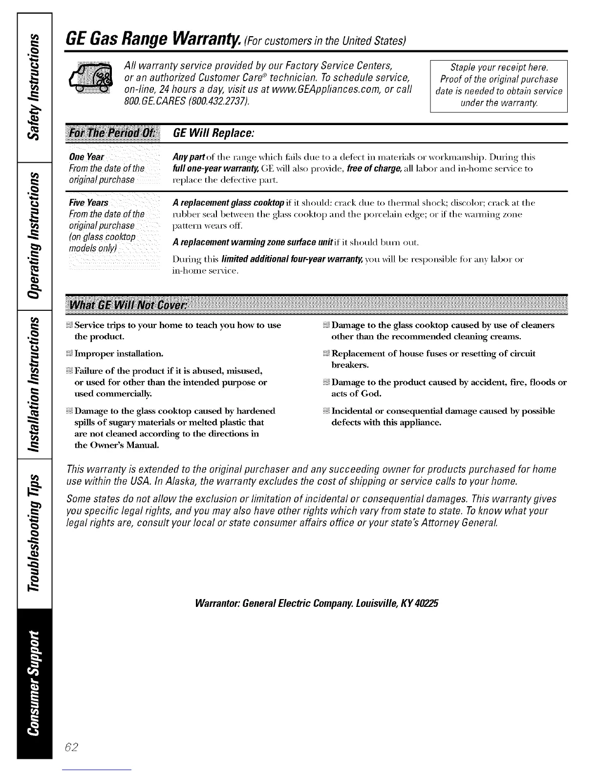 GEGasRange Warranty.(Forc.stomersintheUnitedstates)