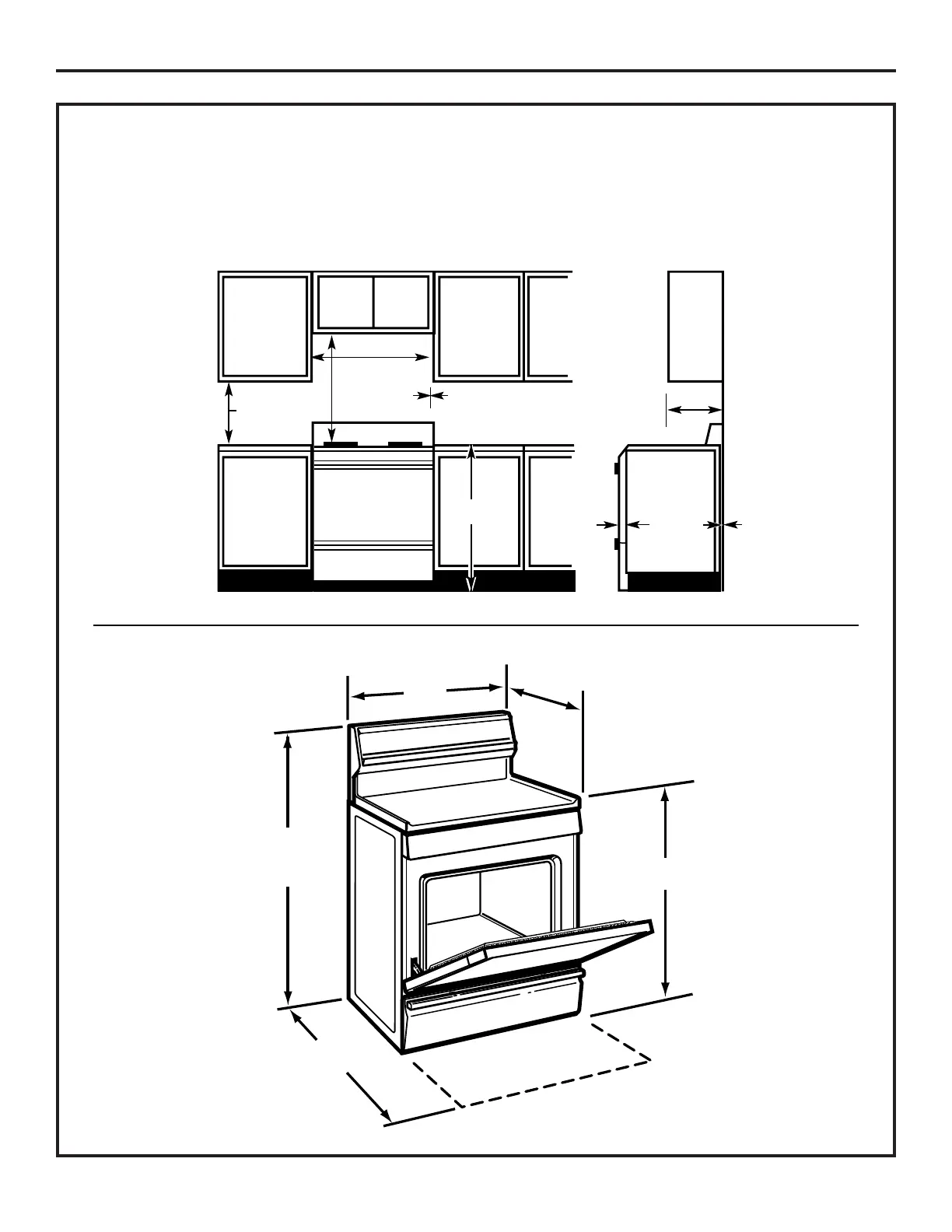 Provide adequate clearances between the range and adjacent combustible surfaces. These dimensions must be met for