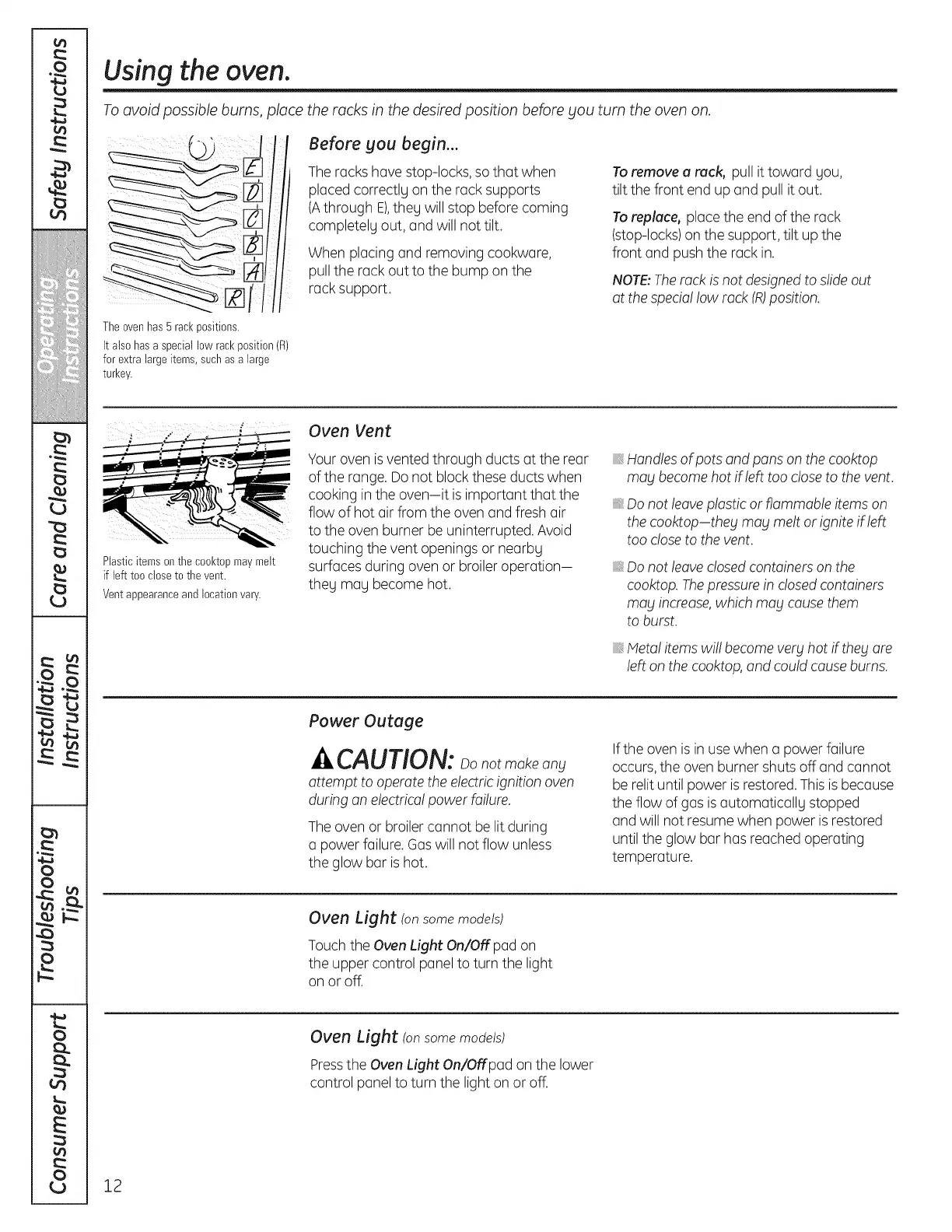 To avoid possible burns, place the racks in the desired position before you turn the oven on.