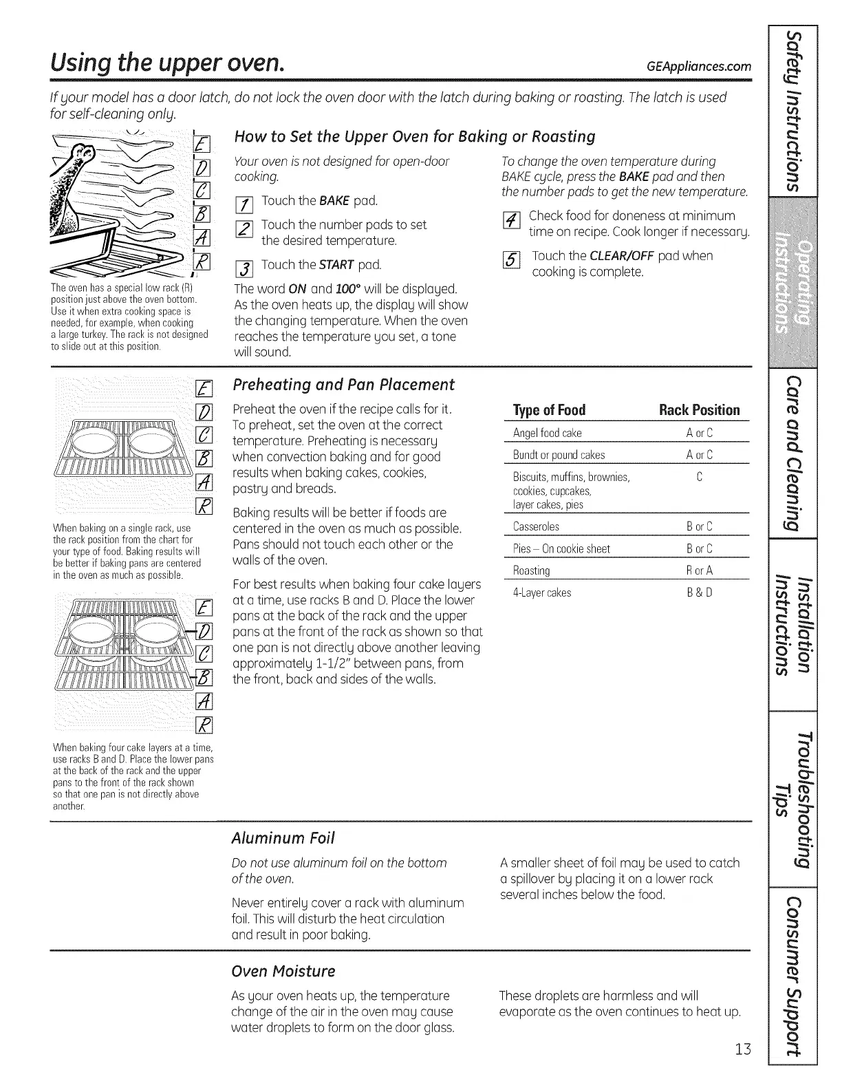 do not lock the oven door with the latch during baking or roasting. The latch is used