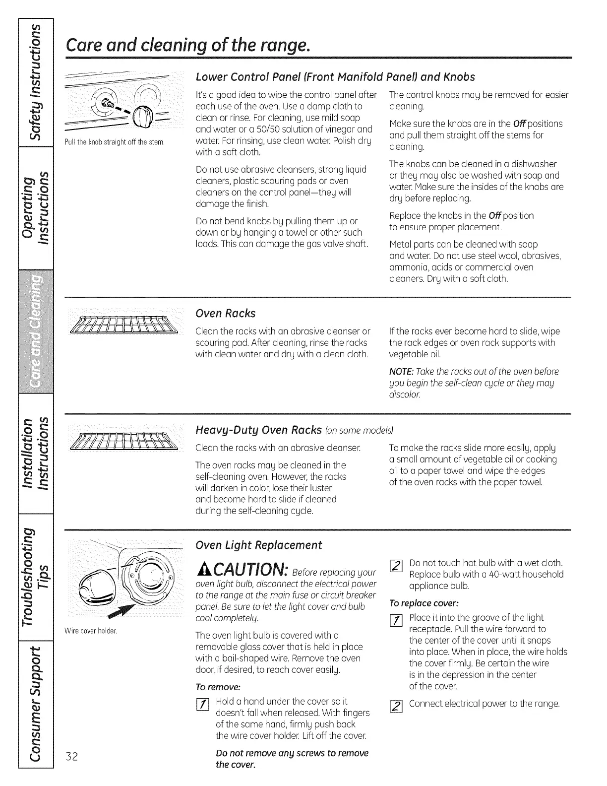 Lower Control Panel (Front Manifold Panel) and Knobs
