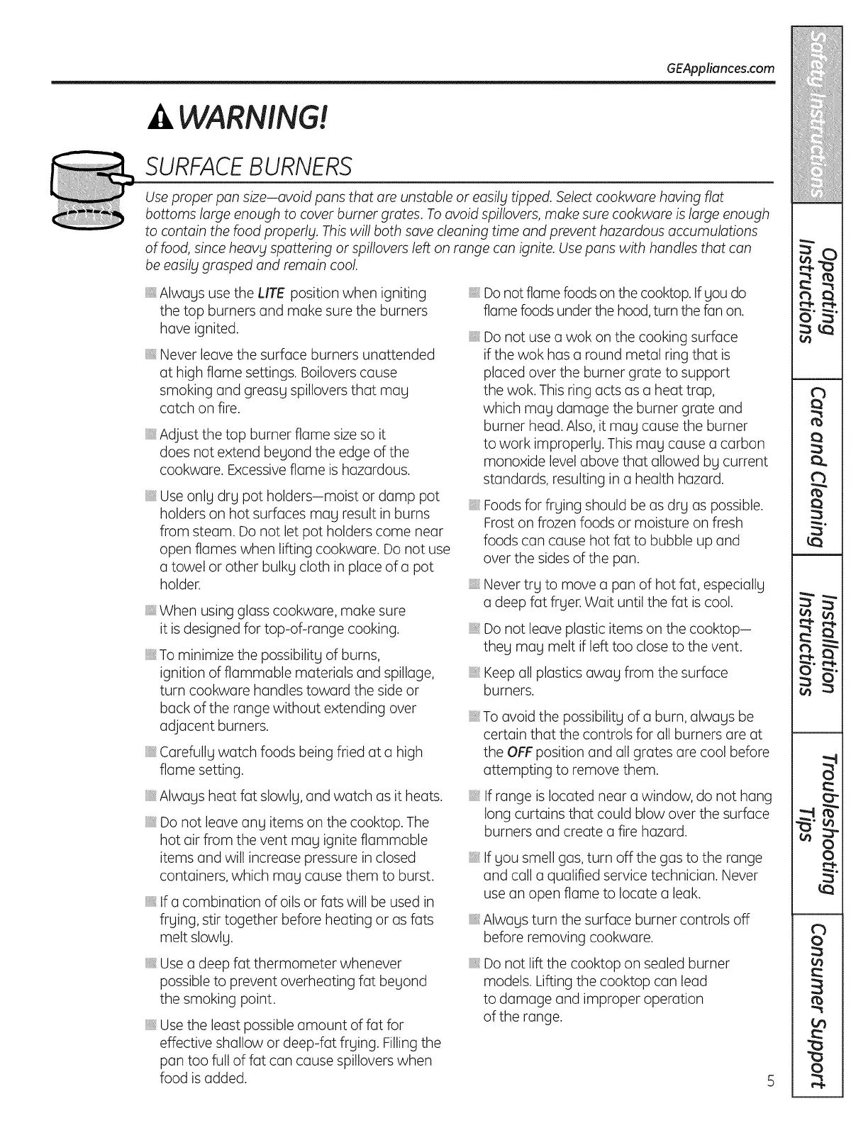 bottoms large enough to cover burner grates. To avoid spillovers, make sure cookware is large enough