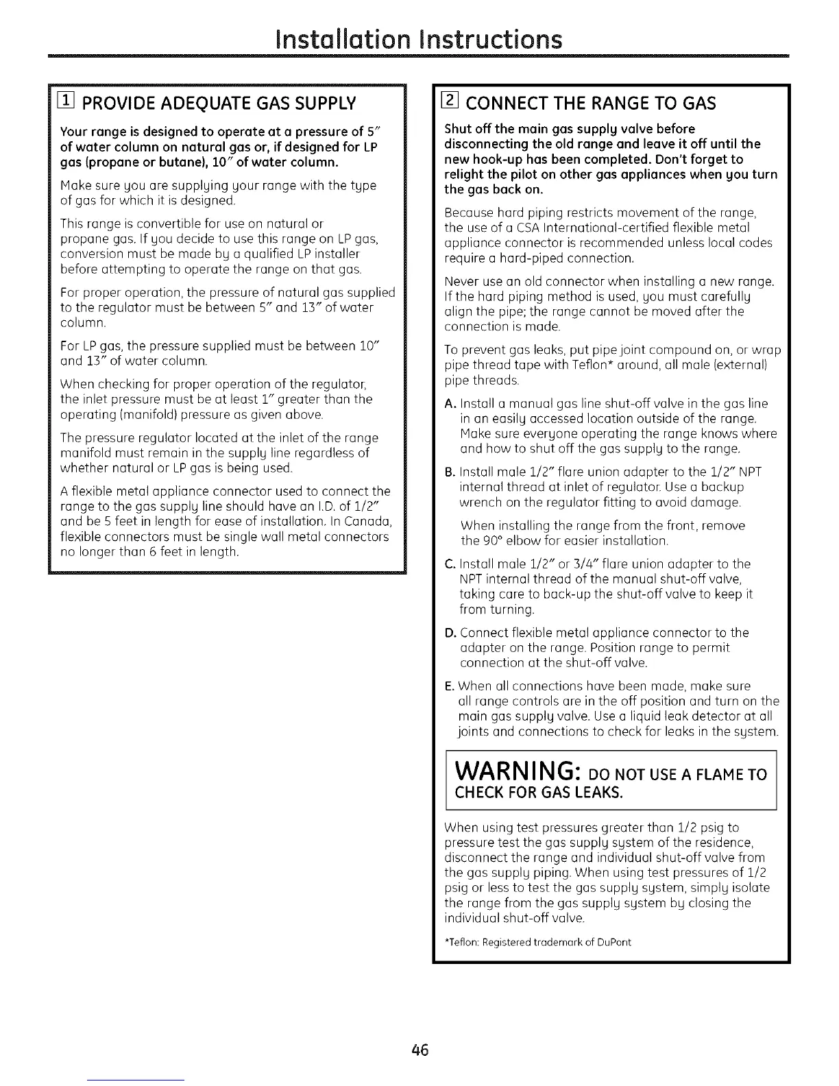 range to the gas supply line should have an I.D.of 1/2"