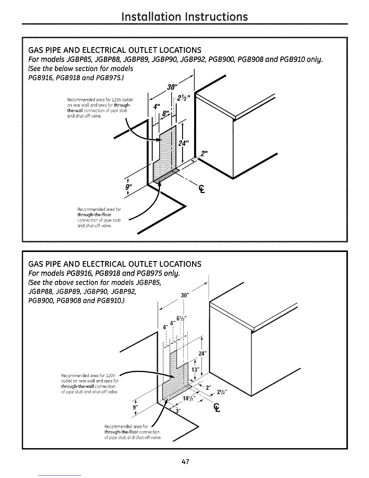 For models JGBP85, JGBP88, JGBP89, JGBP90, JGBP92, PGB900, PGB908 and PGB910 onlg.