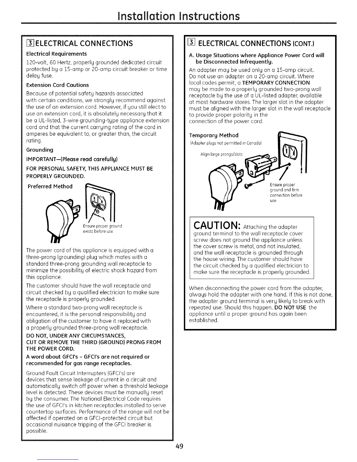 recommended for gas range receptacles.