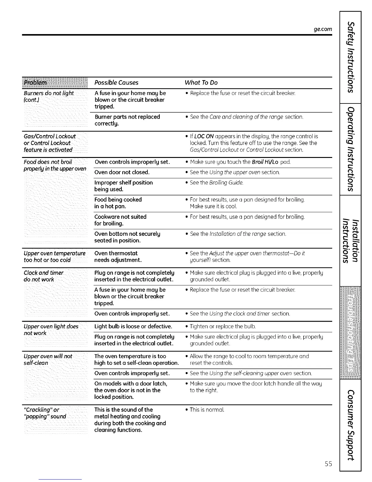 Burners do not light A fuse in gour home mag be * Replacethe fuse or reset the circuit breaker: