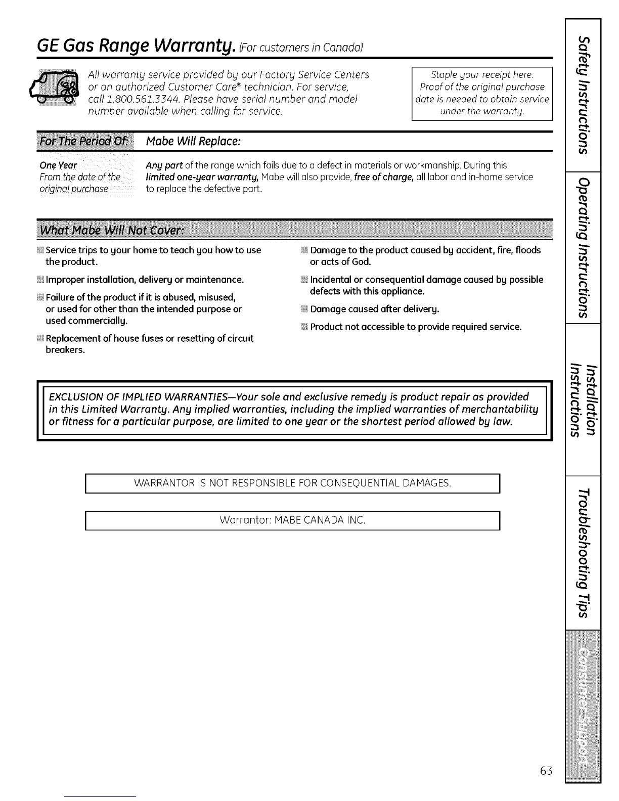 I Wqrrqntor: MABE CANADA INC. I