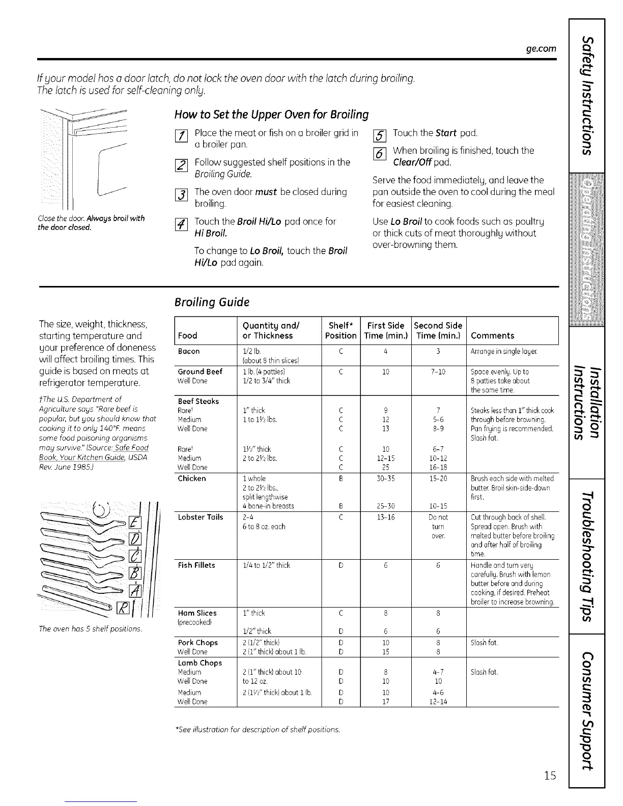 If Four model has a door latch, do not lock the oven door with the latch during broiling.