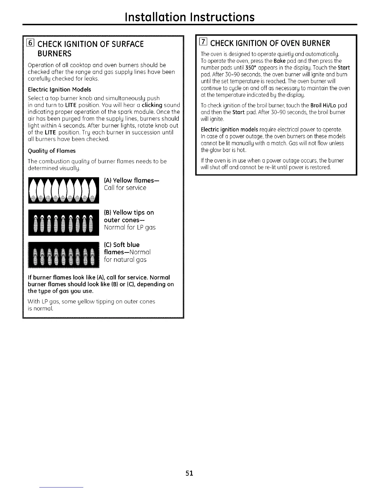 If burner flames look like (A), call for service. Normal