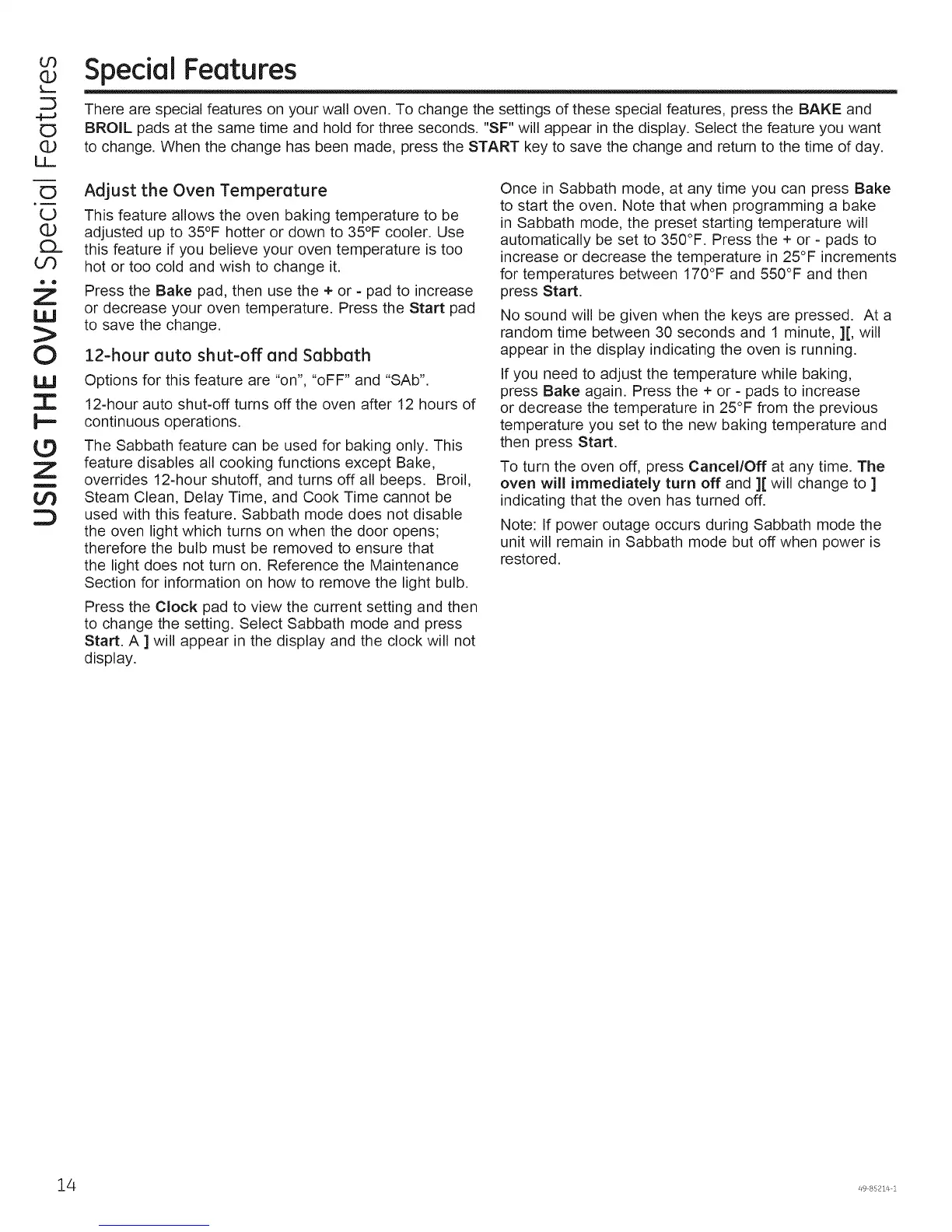 There are special features on your wall oven. To change the settings of these special features, press the BAKE and
