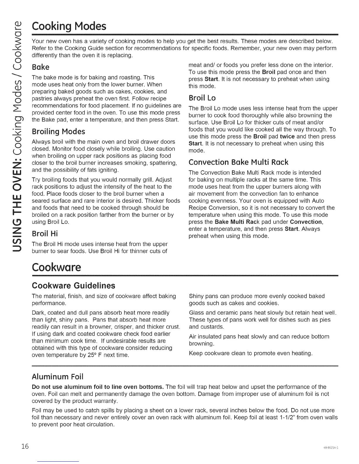 Your new oven has a variety of cooking modes to help you get the best results. These modes are described below.