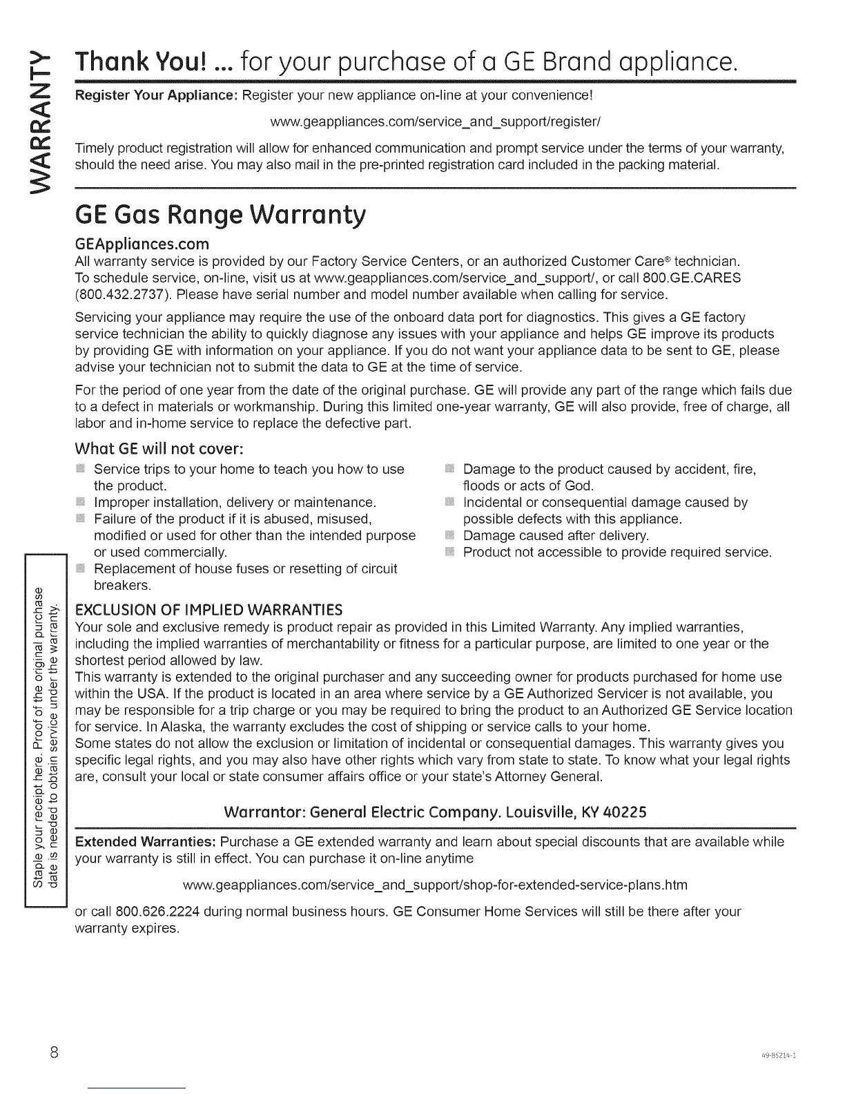 GE Gas Range Warranty