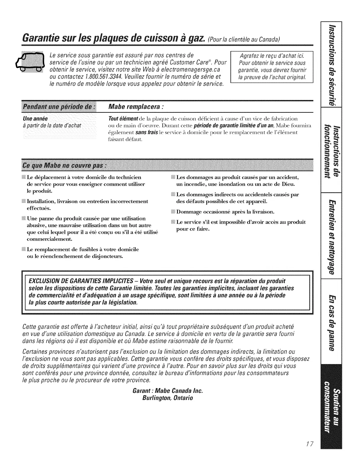 Garant : Mabe Canada Inc.