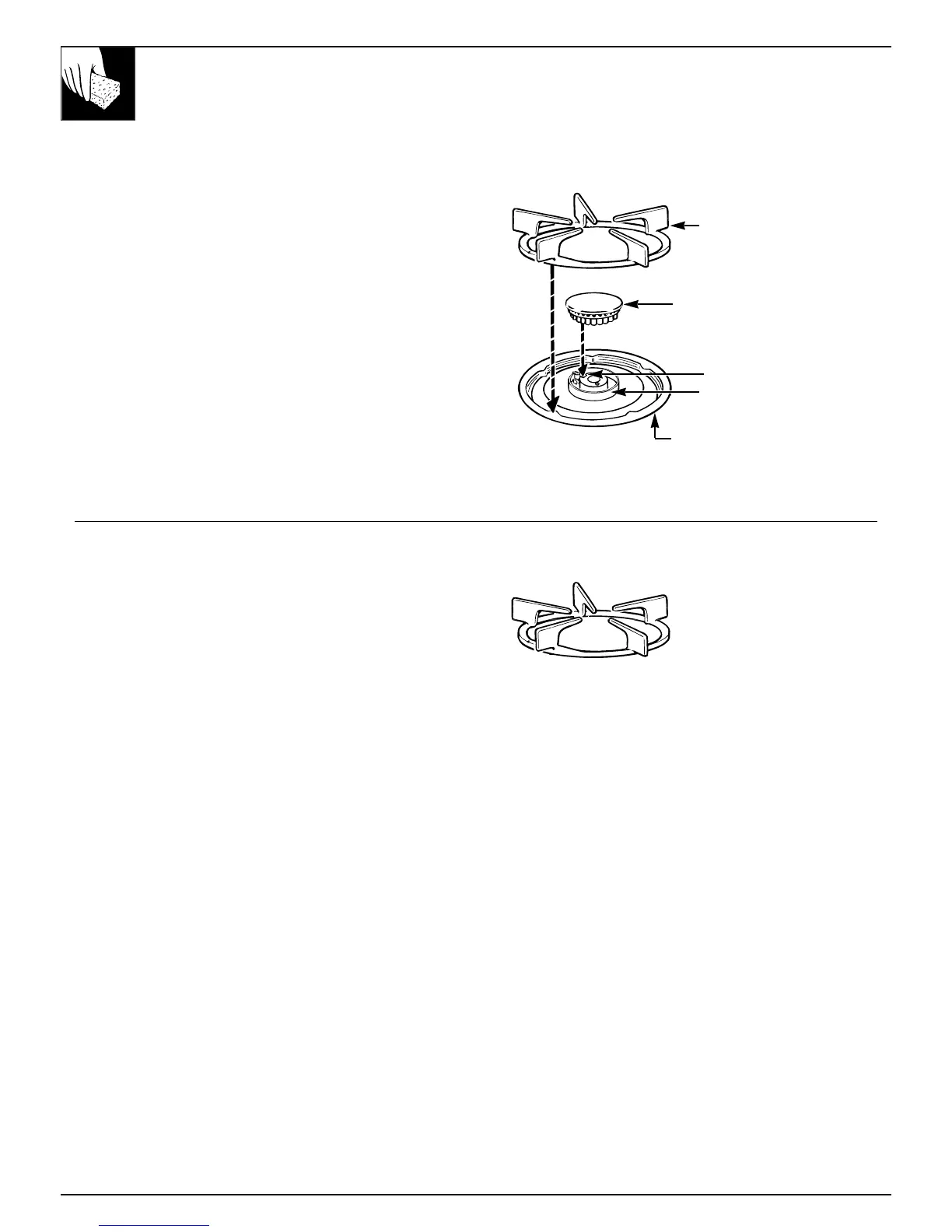 back on the cooktop wet. When replacing the grates,