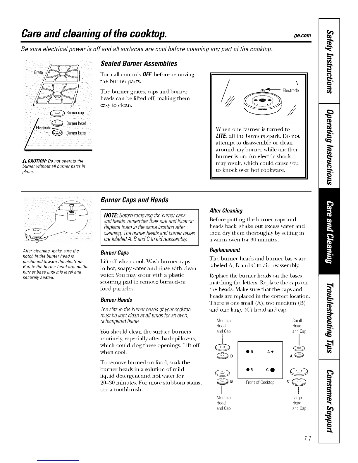 Careand cleaning of the cooktop, ge.com