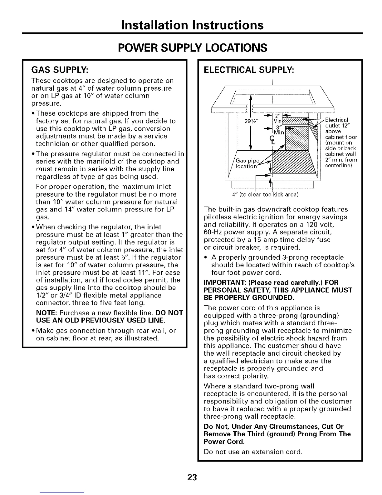 gas supply line into the cooktop should be