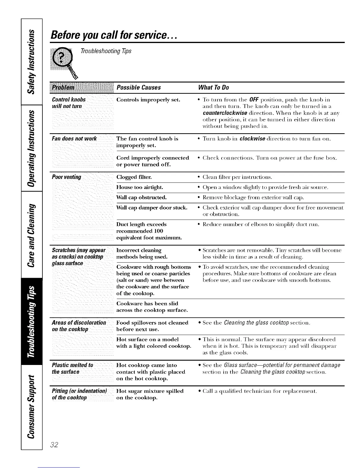 Areas of discoloration Food spillovers not cleaned • See the Cleaning the glass cooktop section.