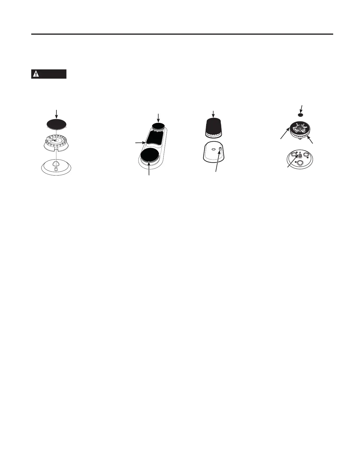 Do not attempt to remove bridge burner, oval burner or tri-ring burner caps from burner heads.
