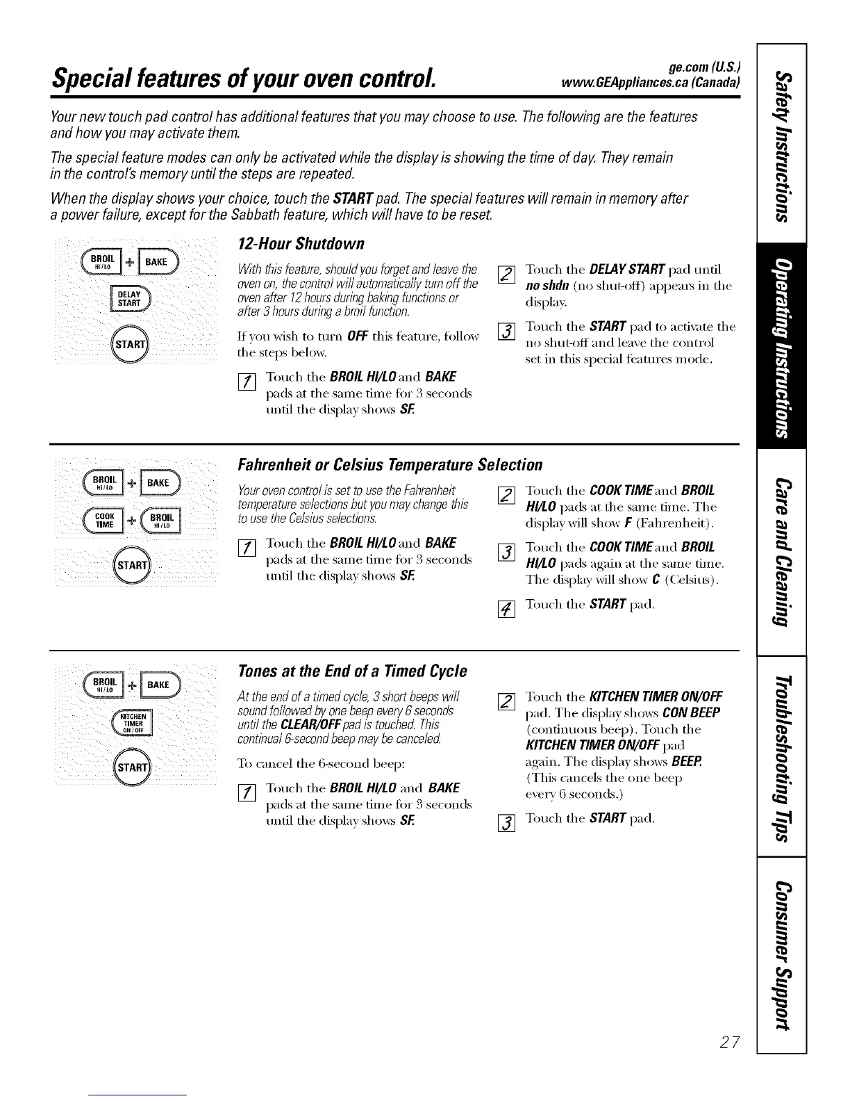 Special featuresof yourovencontrol www.OEAppliances.ca(Canada)