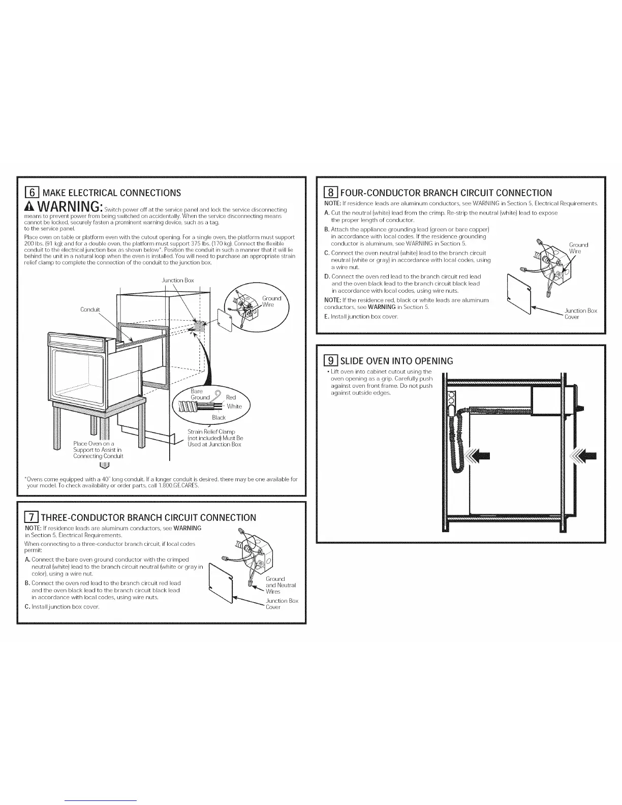 200 Ibs. (91 kg); and for a double oven, the platform must support 375 Ibs. (170 kg). Connect the flexible