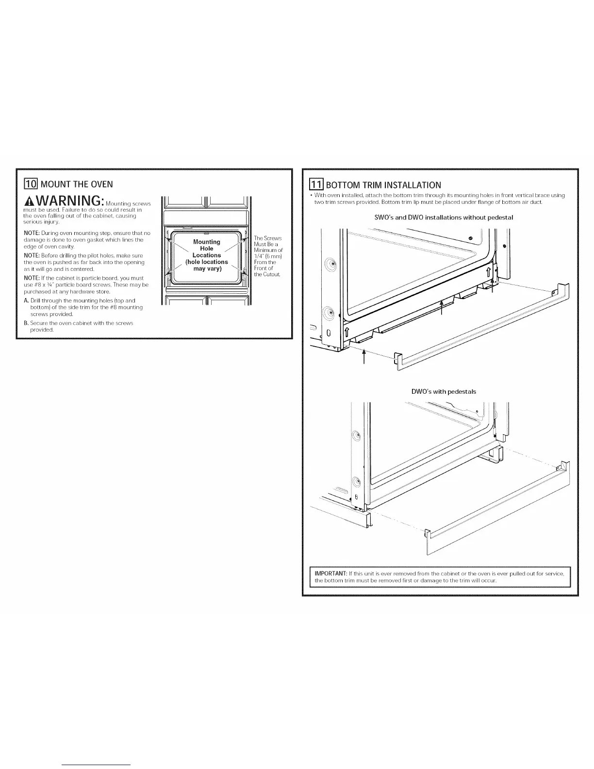 IMPORTANT: If this unit is ever removed from the cabinet or the oven is ever pulled out for service, Ithe bottom trim must be removed first or damage to the trim will occur.