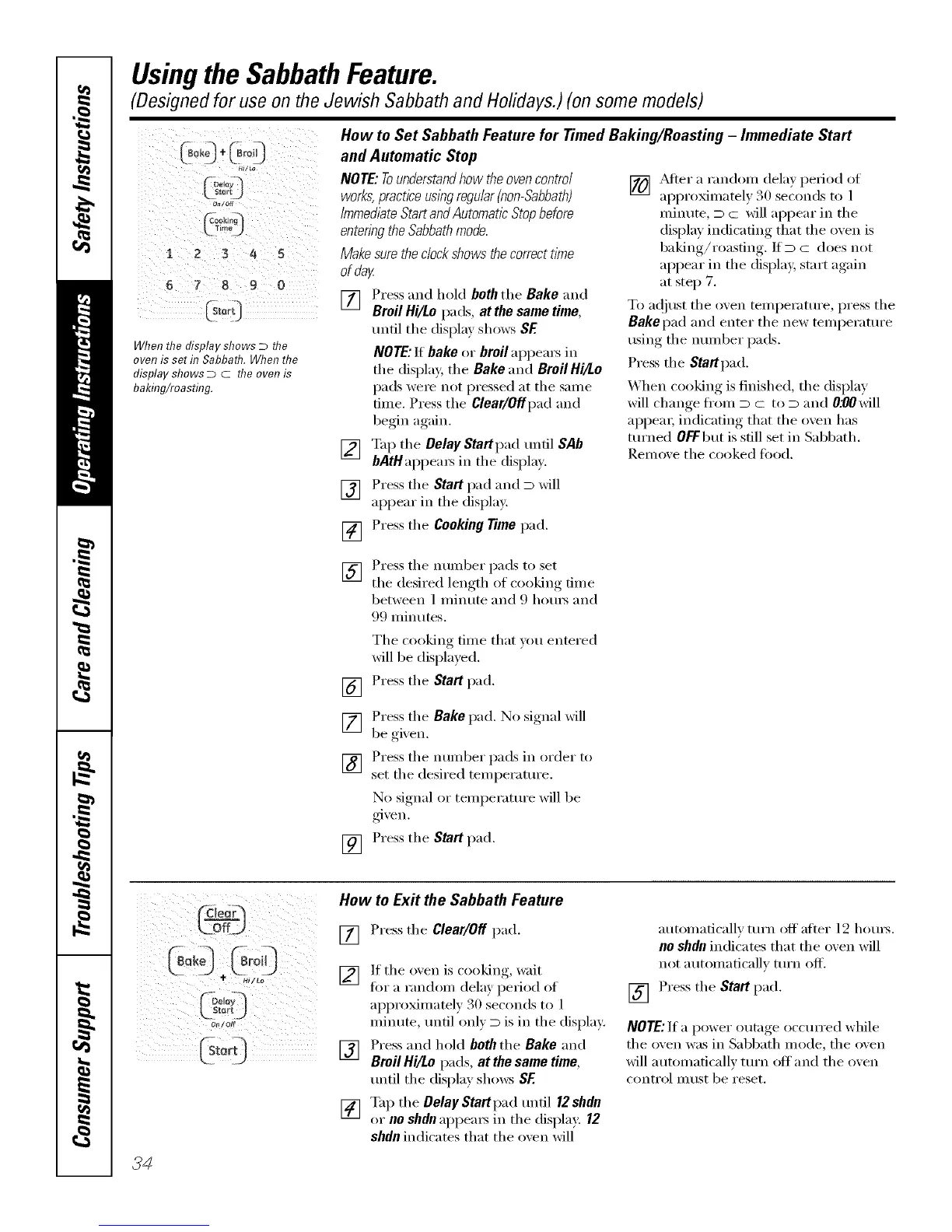(Designed for use on the Jewish Sabbath and Holidays.) (on some models)