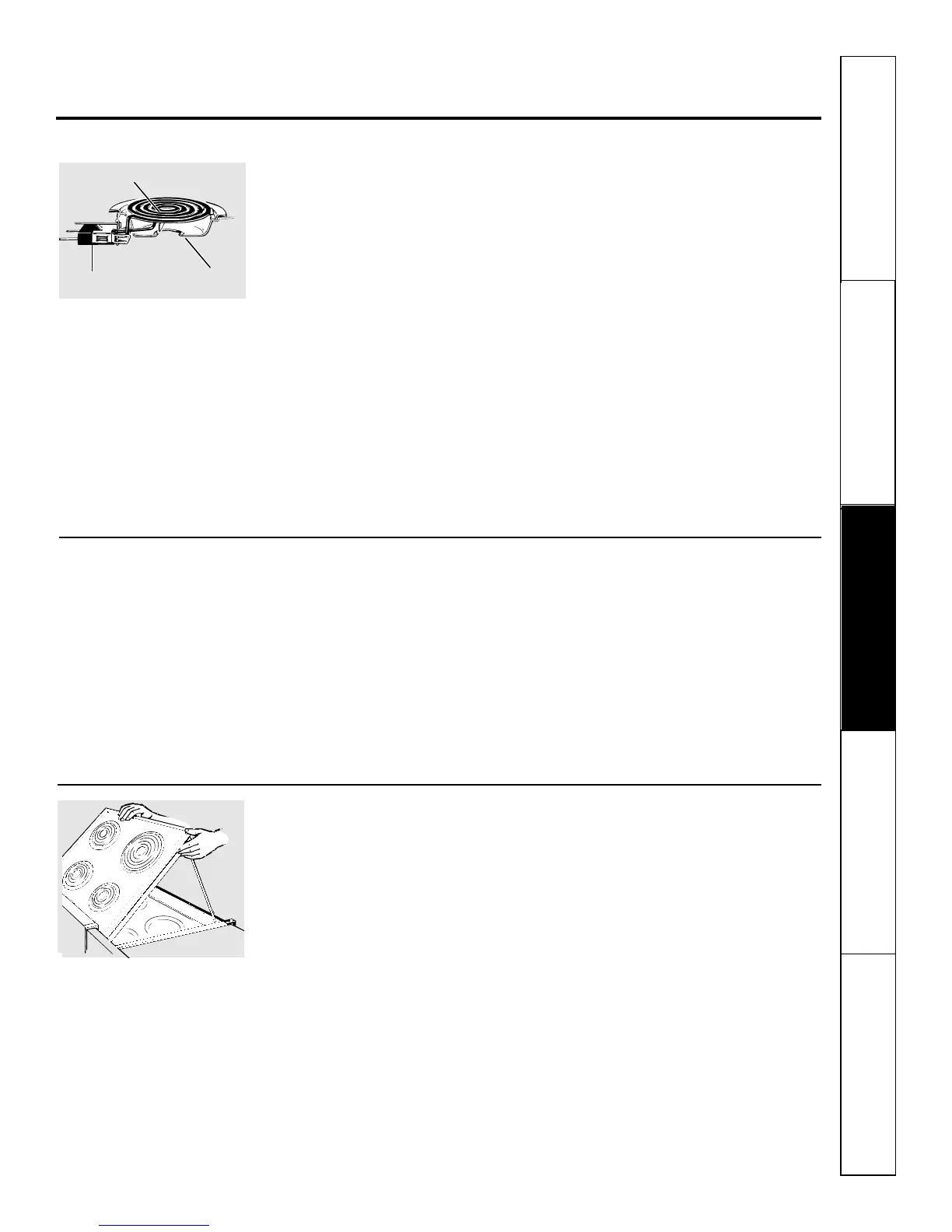 Be sure the controls are turned to OFF and the surface units are cool before attempting to remove them.