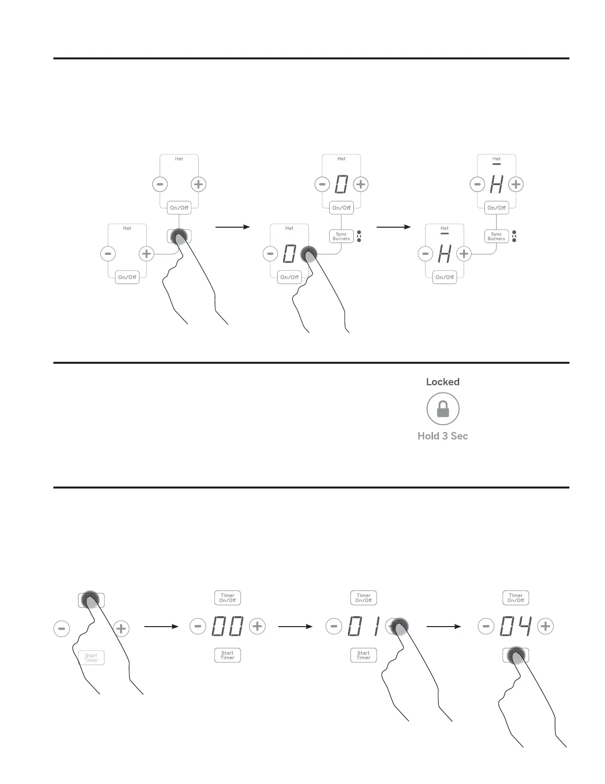 0DLQWHQH]ODWRXFKHSync Burners enfoncée pendant environ