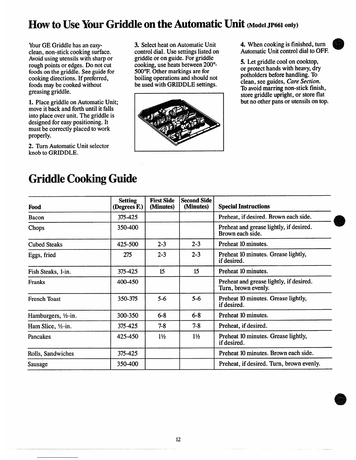 HOW to US(! yOUI’GriddleontheA~tom~ti~Unit(ModelJPWIonly)
