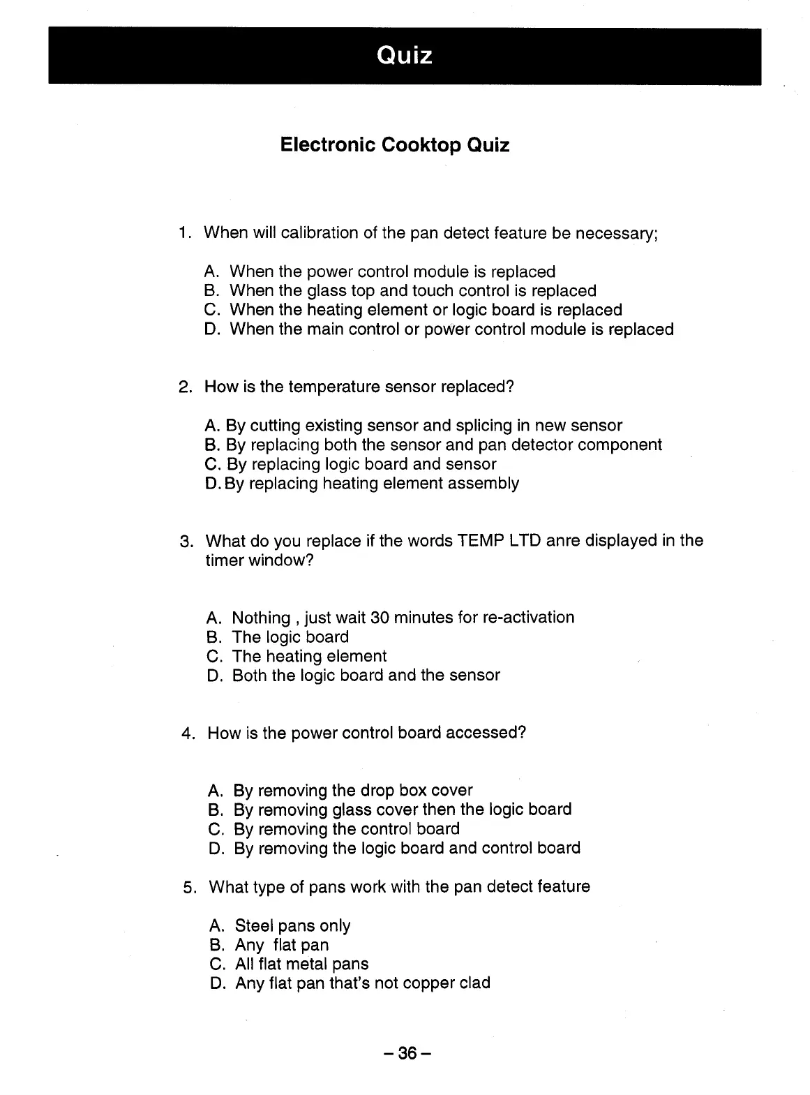 GE JP938 - Quiz; Electronic Cooktop Quiz