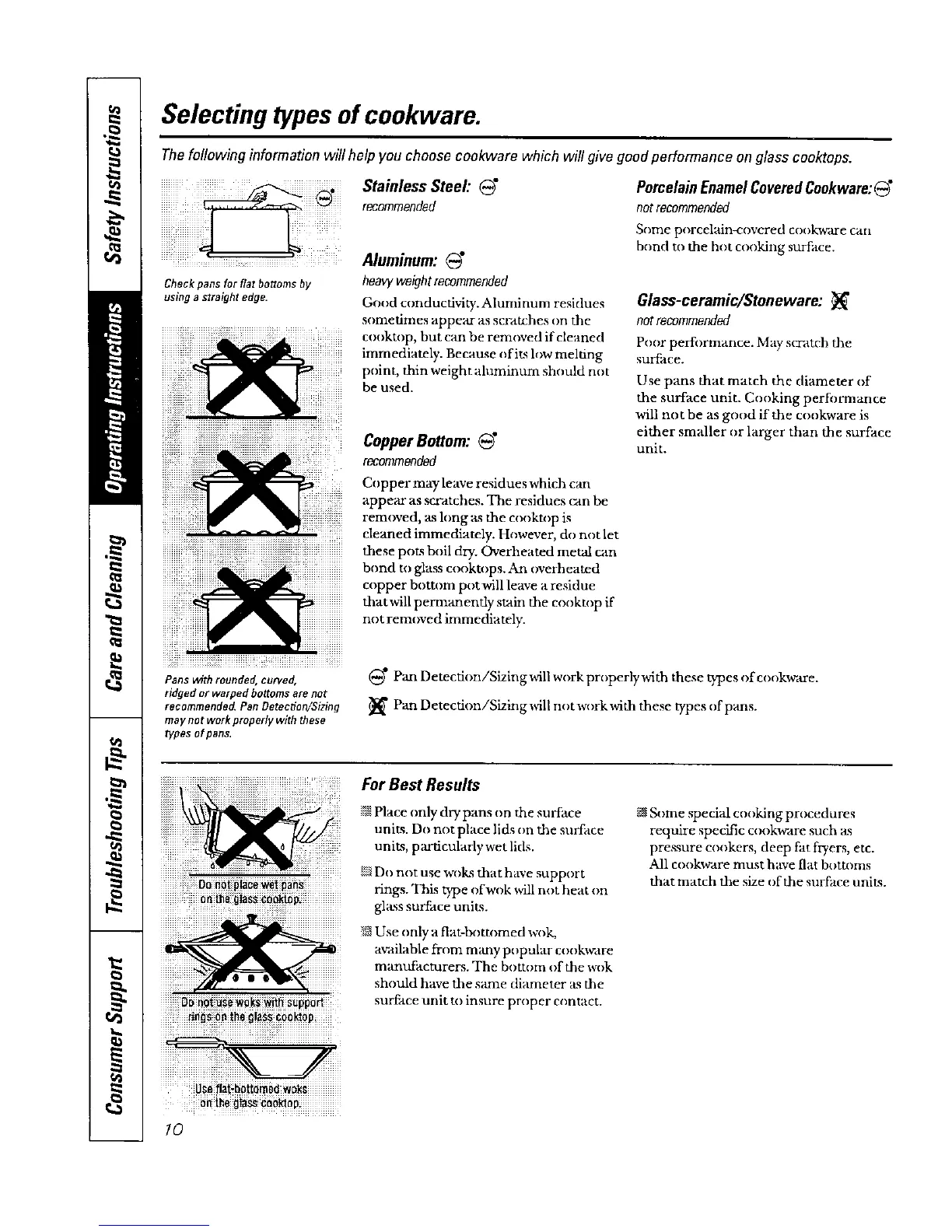 Pan Detection/Sizing will work properlywith these types of cookware.