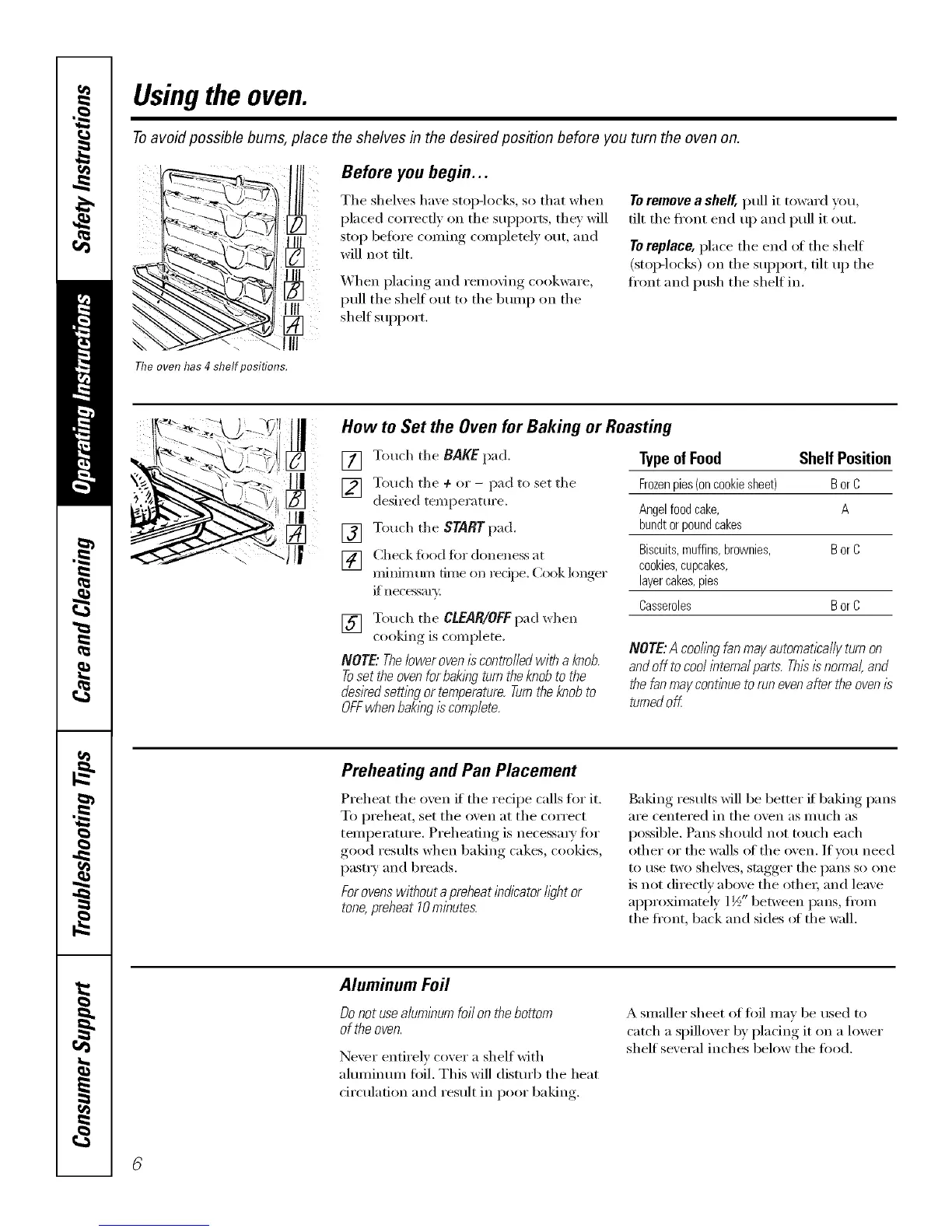 Toavoid possible bums, place the shelves in the desired position before you turn the oven on.