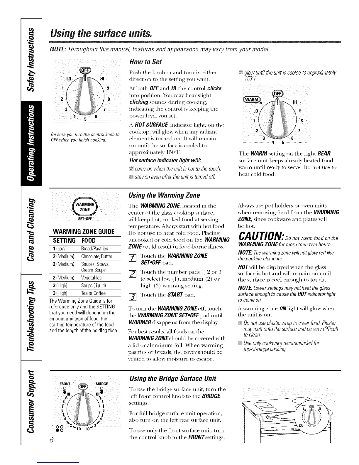 NOTE" Lower settings may not heat the glass