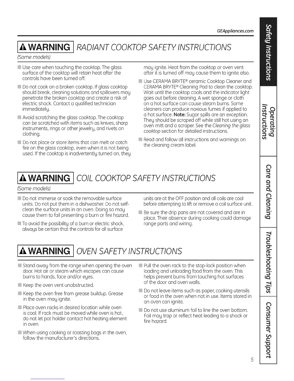 RADIANT COOKTOPSAFETY INSTRUCTIONS