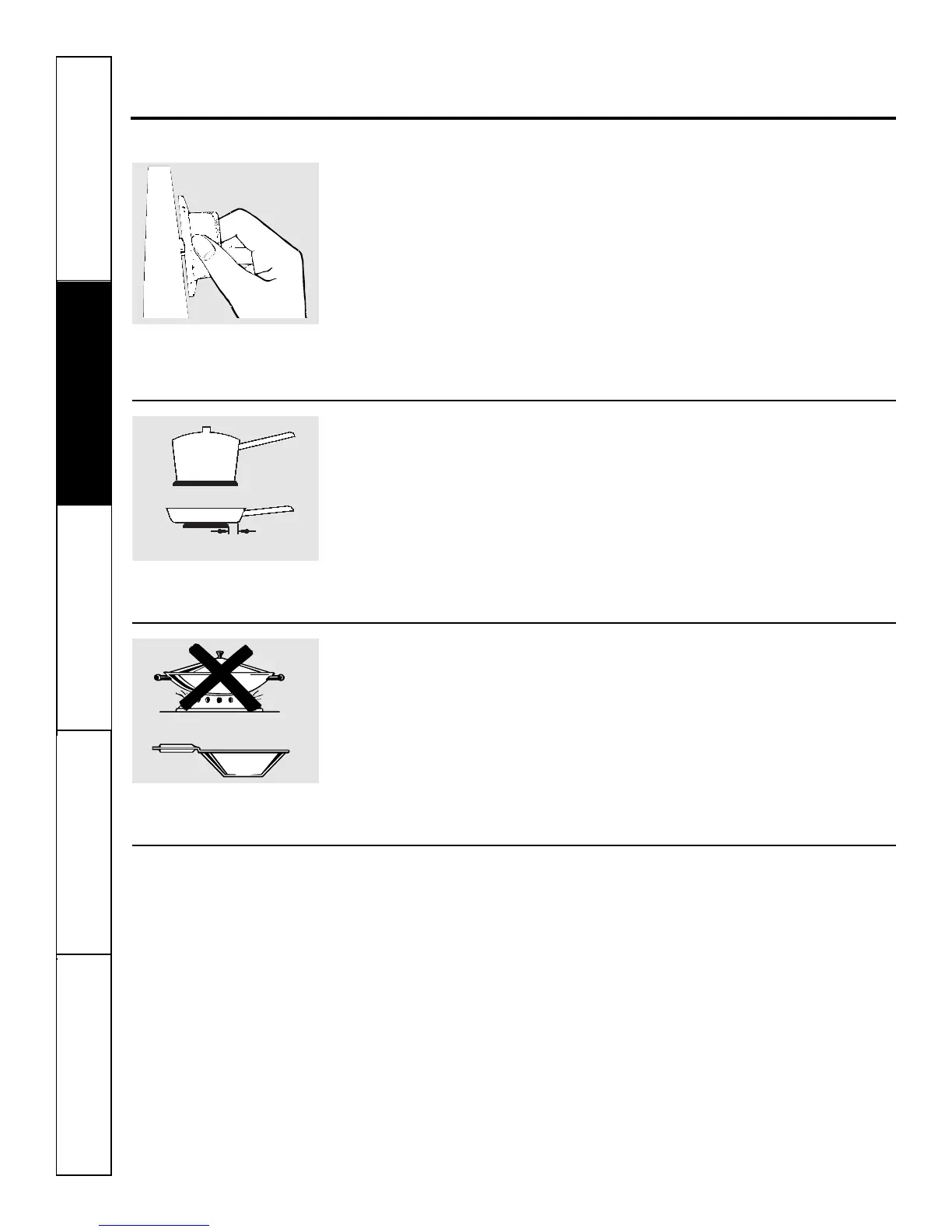 The pan should not extend over the