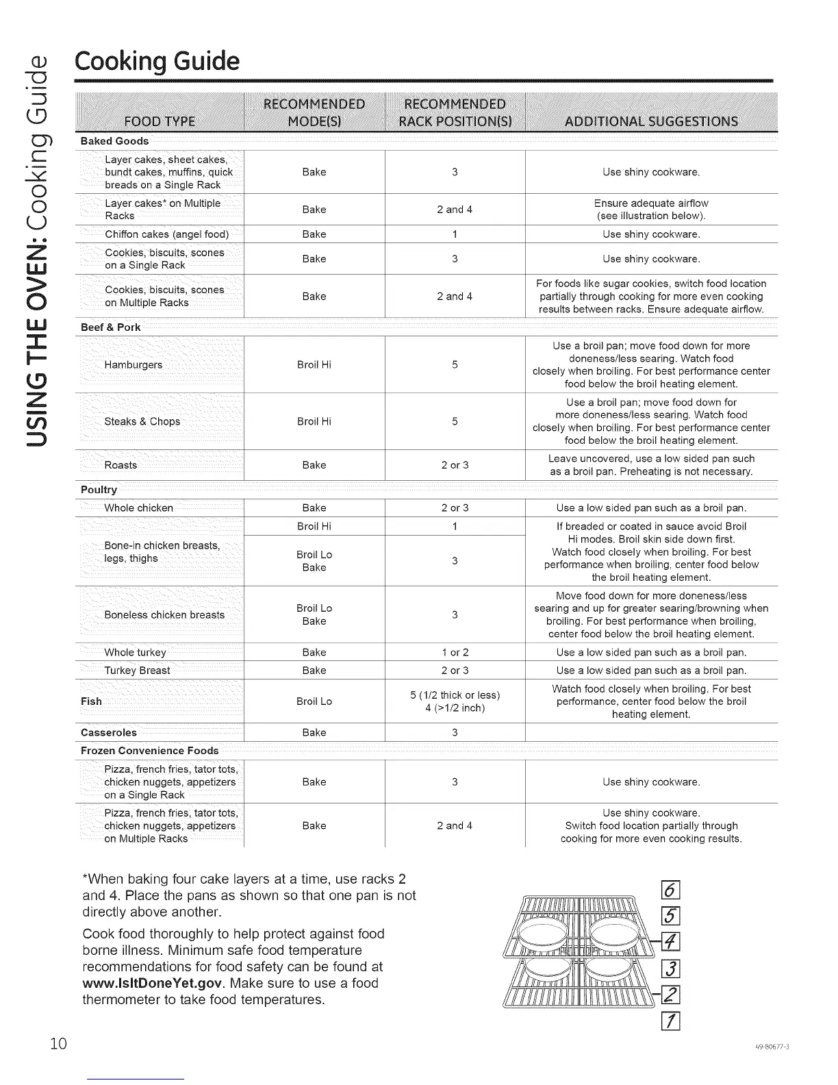 *When baking four cake layers at a time, use racks 2