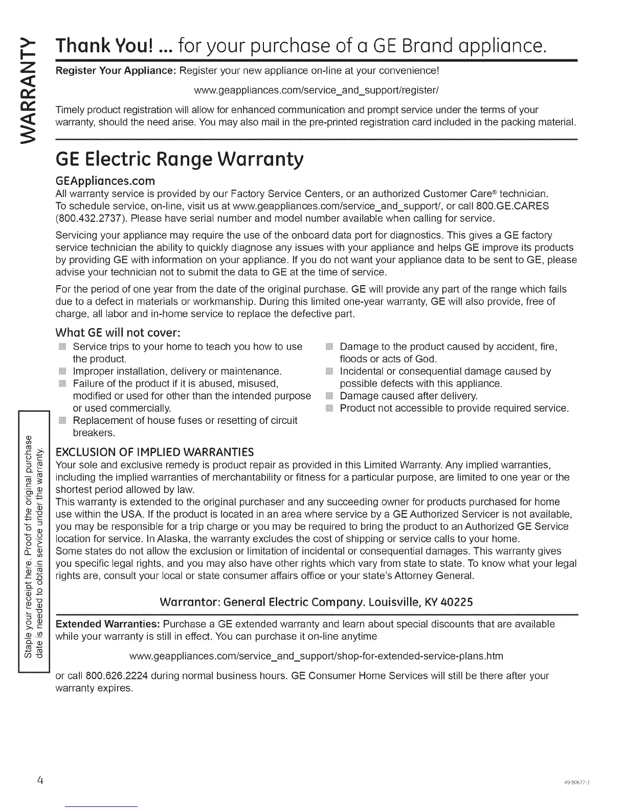 GE Electric Range Warranty