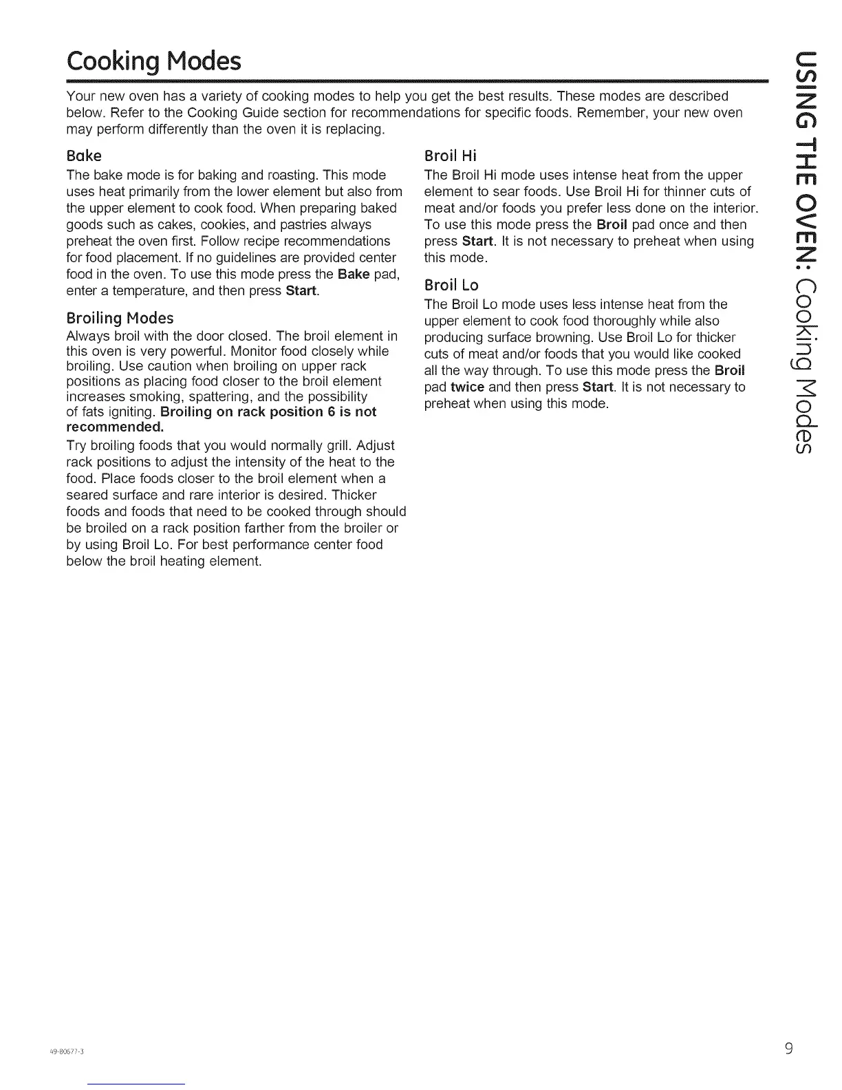 below. Refer to the Cooking Guide section for recommendations for specific foods. Remember, your new oven