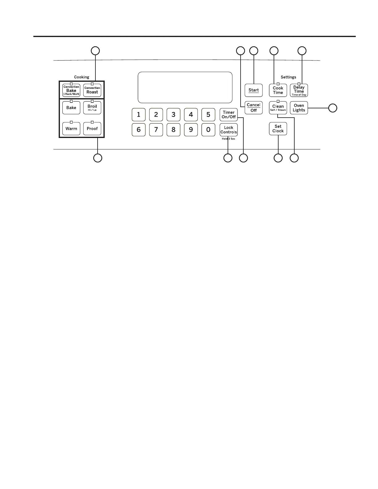 (Hornear), Broil Hi (Asar Alto), Broil Lo (Asar Bajo), Proof