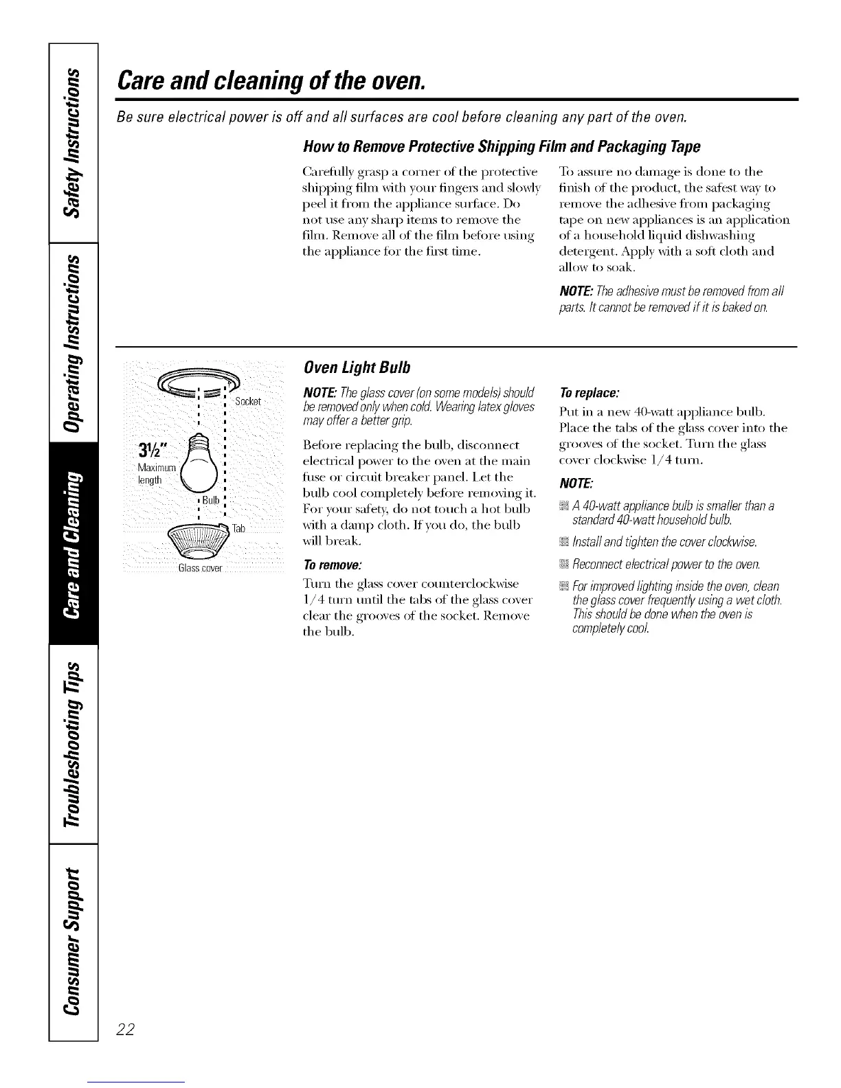 Careand cleaning of the oven.