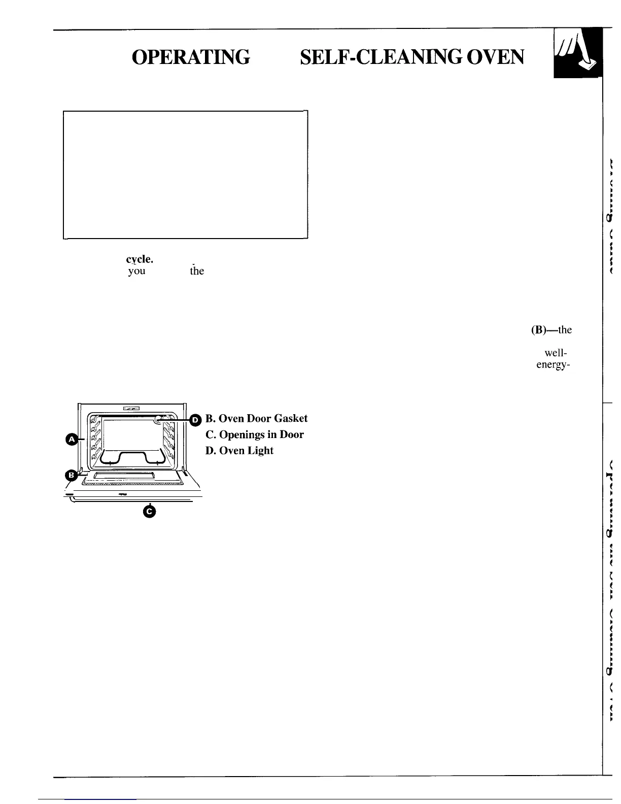 Make sure the oven light bulb cover (D) is in place.
