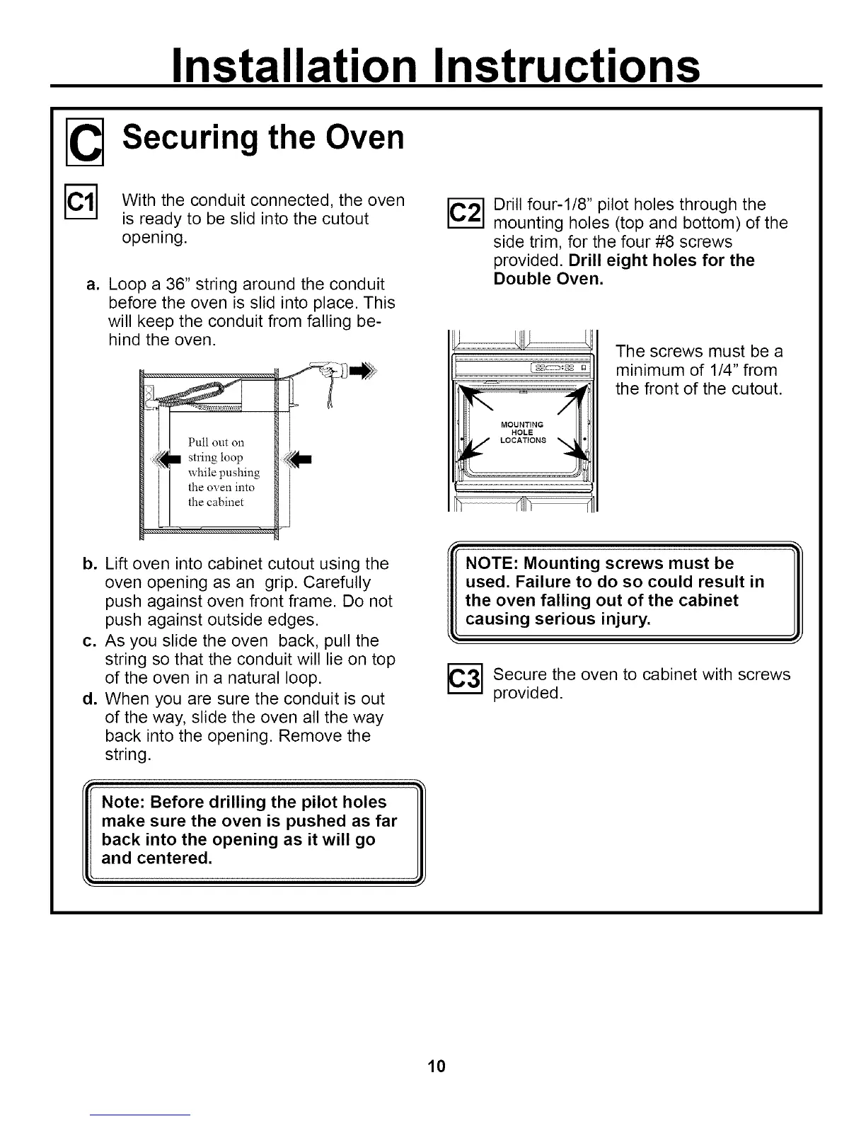 _--_ Secure the oven to cabinet with screws