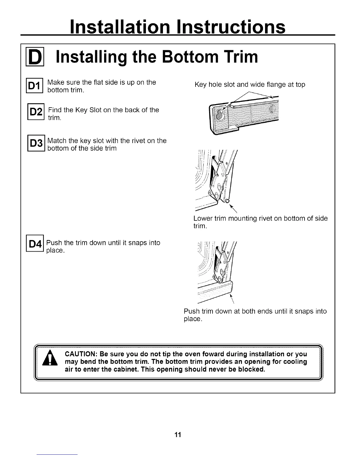 may bend the bottom trim. The bottom trim provides an opening for cooling