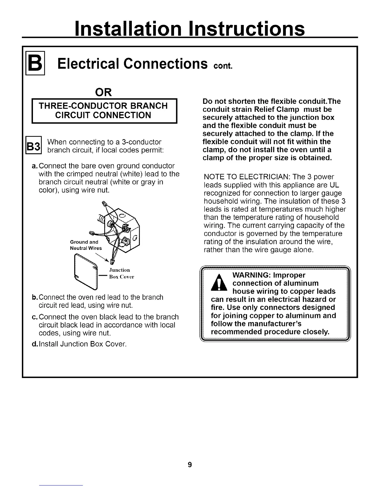 a.Connect the bare oven ground conductor