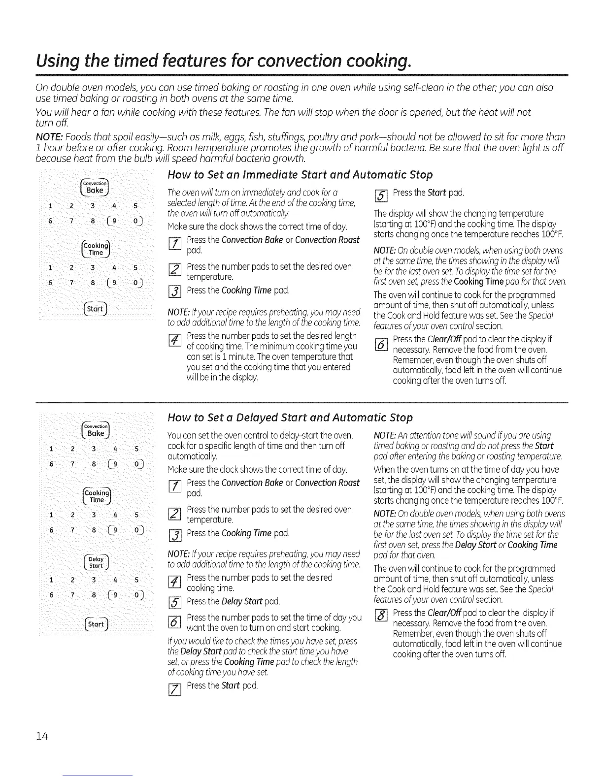 Using the timed features for convection cooking.